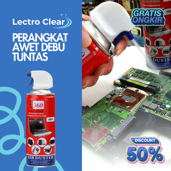 Lectro Clear hadir sebagai semprotan gas kering bertekanan tinggi yang aman membersihkan debu tanpa meninggalkan kelembapan.