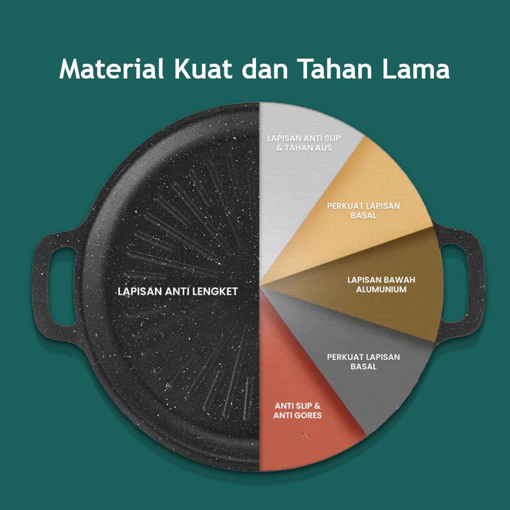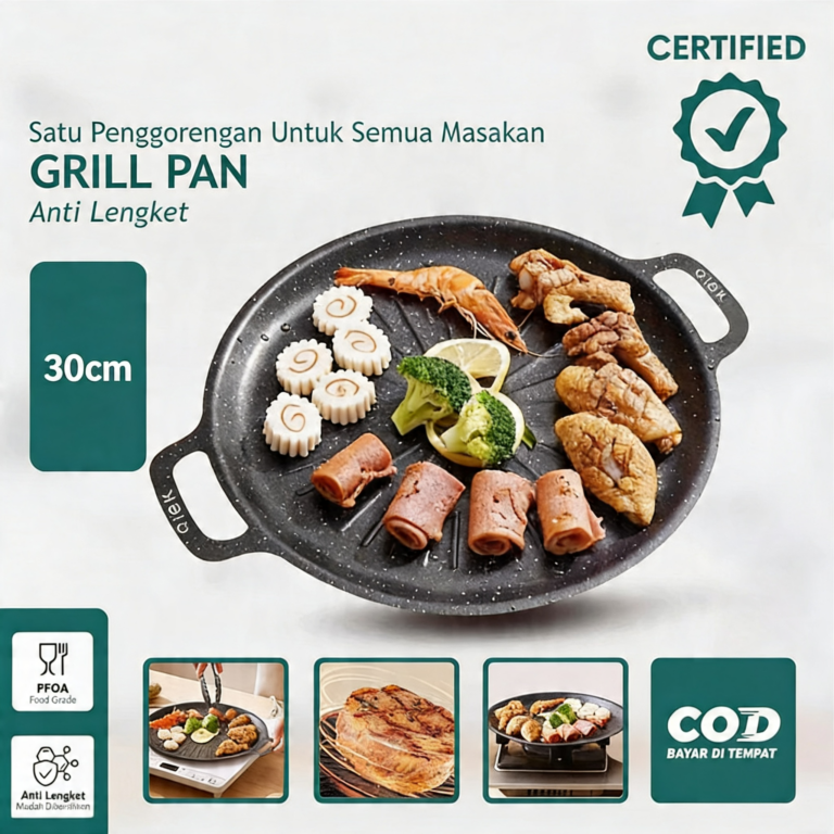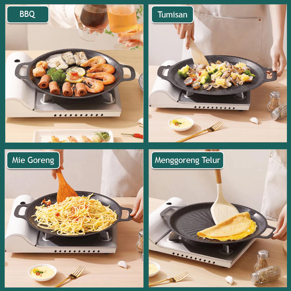 Desainnya praktis dan bisa langsung dipakai di berbagai jenis kompor tanpa ribet alat tambahan. Cocok untuk masak harian sampai BBQ-an di rumah.